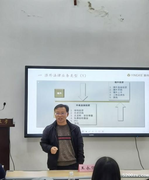 讲座伊始,国律师首先让大家分享了对涉外律师形象的一些看法,并且给大家介绍了一些涉外法律业务的主要类型,包括国家贸易中的一般贸易以及两反一保;国际争议解决机制中的国际诉讼、国际仲裁和WTO争端解决机制;境外直接投资、并购、上市业务;绿地投资、外资并购、私募股权基金、IPO等。