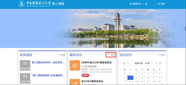 2. 登录后,点击“最新活动”板块右上方的“更多”,进入操作页面。