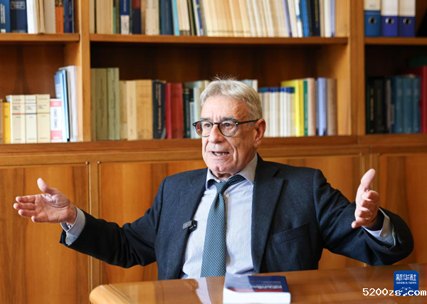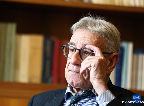 4月23日,在意大利罗马,奥利维耶罗·迪利贝托教授在办公室接受新华社记者专访。新华社记者 李京 摄