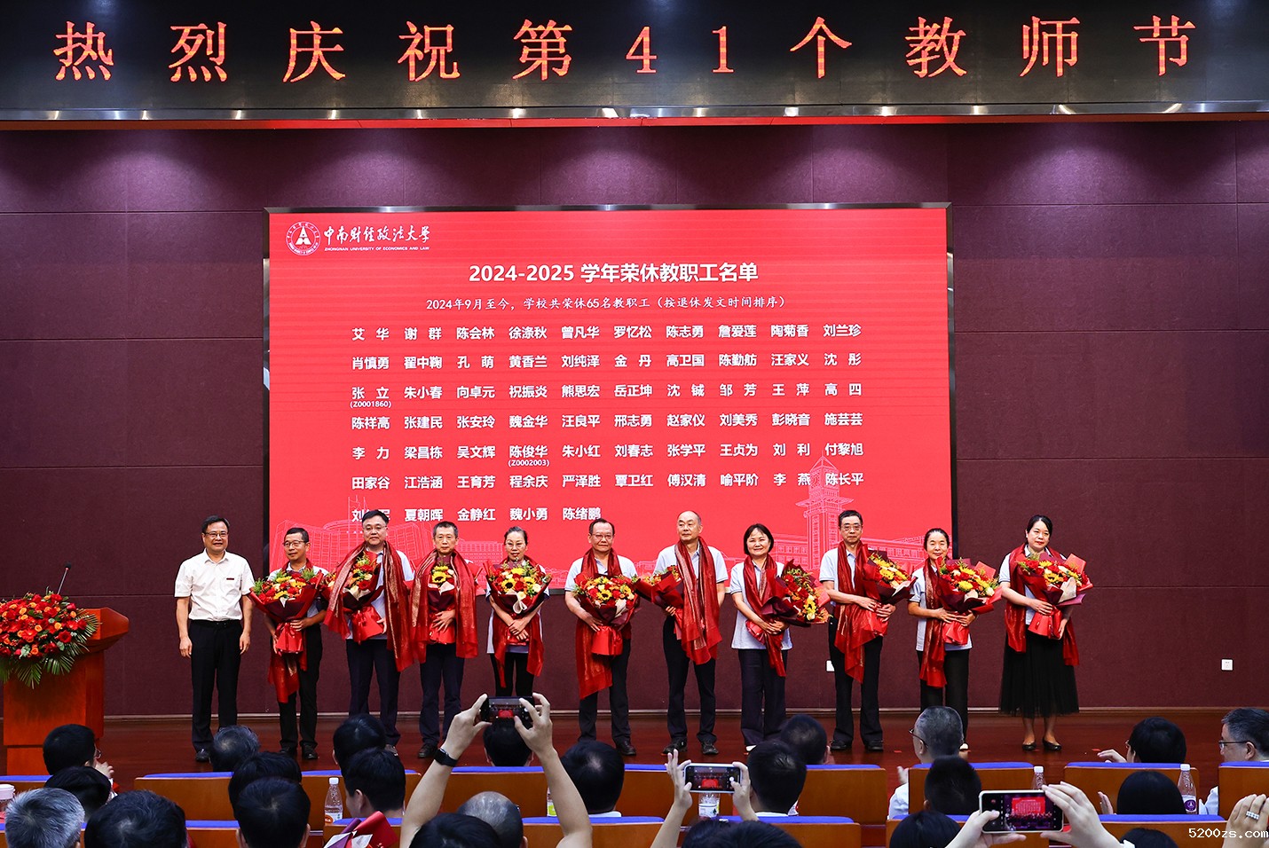 新闻网讯(通讯员 张立 李必成)9月8日下午,学校在文瀚楼南报告厅举行2025年教师节庆典,热烈庆祝第41个教师节。全体校领导班子成员,校党委常委、校长助理,各二级单位正、副职党政负责人,各教学单位系主任、教师党支部书记,高层次人才代表,获奖教师代表,光荣从教40年教师,荣休教师代表,新入职教职工和学生代表参加庆典。活动由校党委常委、副校长张琦主持。