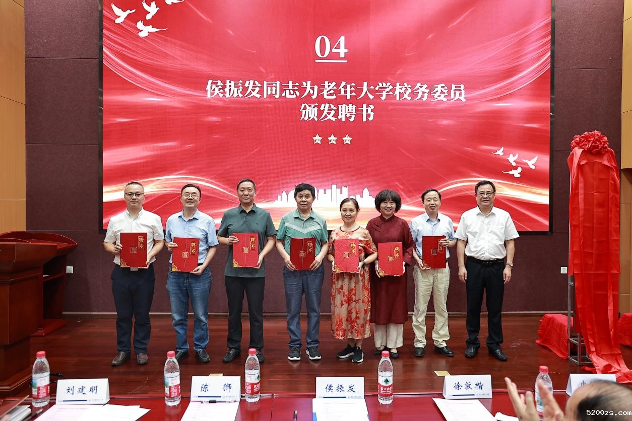 在热烈的掌声中,侯振发为校老年大学校务会委员颁发聘书,陈狮为受聘的首批任课教师颁发了聘书。