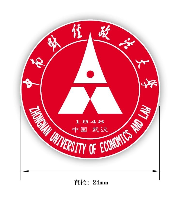 (1)中间图案实体部分为一“人”字,虚体部分为一“文”字,表示学校人文社科大学的性质,人形还表示学校“以人为本”的办学理念,张开双臂以示开放办学,迈开步伐以示稳健发展;(2)中间图案为一奋发向上的箭头,形如英文大写字母“A”,冲破内圈,表示“辐射全国、走向世界,培育拔尖人才”,代表学校建设特色鲜明的高水平人文社科大学的奋斗目标;(3)“1948”和“中国武汉”表示学校建校时间和现在所在地;(4)上半圈为邓小平题写的学校校名的组合,下半圈为英文校名。校标图案为: